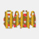 Uma bela caixa de natal de ouro com um padrão de adoráveis gnomos de Natal (ou elfos, ou Papais noeis!) sobre um fundo de ouro, rodeada por sinais de Natal que desejavam um Natal muito Feliz, doces e meias de Natal listradas.