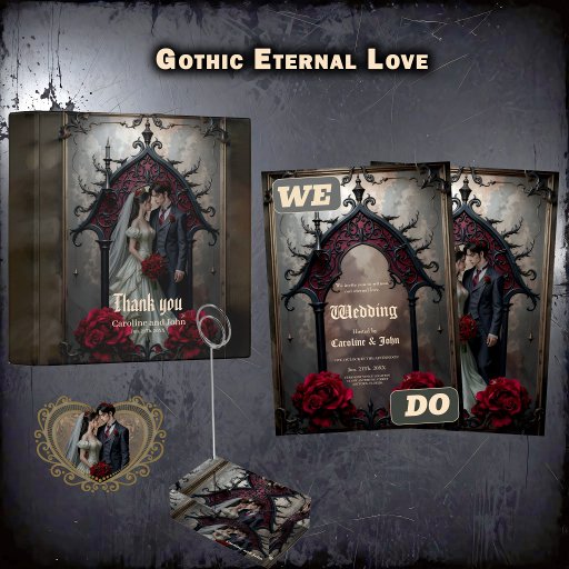 Gothic Eternal Love – Dark Wedding Romance Card with Roses. Beneath shadowed arches and crimson roses, two souls meet where time dares not follow… 🌹🖤 This is not a fleeting promise— but a bond carved into eternity. In a world of light and darkness, they choose each other… again and again. Not just in this life— but in every life that dares to come.