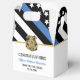 Este design apresenta uma bandeira da polícia com listras pretas e brancas, e uma fina faixa azul de linha também. Uma forma excelente de dizer parabéns ao novo formando para sua graduação na academia de polícia. Personalize com o nome do polícia de graduação. Celebre este marco em estilo!