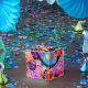 Se a cor o enche como me faz, então essas caixas de favor são para você. Coberta por um grafite digital que eu desenhei, ele tem tons de coral, laranja, lavanda, roxo, turquesa, azul-da-noite, branco, amarelo, verde limão, rosa, preto e muito mais. As camadas de cores e a opacidade variada tornam as caixas favoritas divertidas.