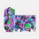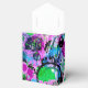 Estas caixas coloridas exibem um abstrato vivo em tons de turquesa, rosa, roxo, lavanda, travesseiro, verde, preto e branco.