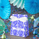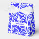 Um medidor decorativo grego tradicional repete o padrão de trenó-chave em azul e branco de forma tão na moda e fácil de personalizar com nomes pessoais, monogramas ou texto de sua escolha