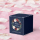 Feliz Natal. Fundo Azul Elegante com Grinalda Floral de Aquarela em Borgonha Marsala para Caixa de Favor de Festa de Natal. Inclui rosas lindas e folhagens botânicas.