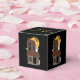 Estas caixas de favorecimento do Halloween apresentam fantasmas em uma casa assombrada, uma lua de cheio, e um morcego voador sobre fundo negro.