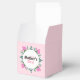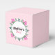 Happy Mother's day favor boxes decorated with pink tulips, white tiny flowers and green leaves.