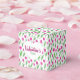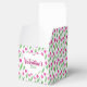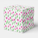 Happy Valentine's day favor boxes decorated with pink tulip pattern on white background.