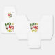 HO HO HO em vermelho verde e cor dourada suja com pudim de Natal, doces e ilustrações em flocos de neve.