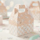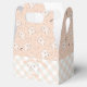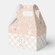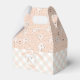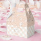 Esta é uma adorável caixa de primeiro aniversario de Dia das Bruxas de laranja pastel neutra do ponto de vista do gênero. O fundo apresenta um padrão bonito, desenhado à mão, de fantasmas, morcegos, estrelas e luas sobre um fundo laranja pastel. A frente e o verso apresentam um fantasma giro em um padrão de gingham laranja e verde personalizado com nome e data.