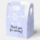 Mande seus convidados de festa de aniversário para casa com um obrigado para você vir! Esta gelada caixa azul de floco de neve é o favor final perfeito para a coleção de Aniversário da Terra Maravilha do inverno. Encha a caixa com guloseimas, doces ou favoritos para festas. Personalize a mensagem para dizer o que quiser!