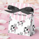 Esta caixa de favor divertida é uma boa escolha para aniversários, chás de fraldas, chás de panela e festas gerais. Apresenta uma vaca feliz sorrindo num fundo branco com um flape listrado rosa e branco. O flap pode ser personalizado para sua ocasião especial ou você pode remover este texto inteiramente se quiser deixar o flap sem ele.