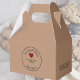 Uma caixa de presentes marrom clássica para colocar presentes em casa bons presentes cozidos, com ingredientes e nome e nome de produto personalizáveis. Este design de cor kraft castanha, de cor vermelha, vai com qualquer plástico ou etiqueta de presente e dará ao destinatário a informação de que necessita sobre os ingredientes em caso de alergias ou sensibilidades de comida. Personalize as suas receitas e mande-as embalar para quando dar a alguém uma embalagem de produtos cozidos. Use a ferramenta de edição no editor de listagem para adicionar o nome do produto e os ingredientes, ou excluir o texto no editor e gravar as informações manualmente mais tarde. Adicione o seu próprio logo no lugar do coração, se quiser!