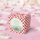 Este Inseto Gafanhoto de Aniversário Obrigado As Caixas de Favor apresentam todo o fundo vermelho e branco marcado, capturando a essência de uma encantadora cena piquenique, com um gafanhoto verde escondido na grama alta com joanetes rastejando. Personalize com uma mensagem de agradecimento e um nome.