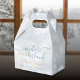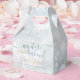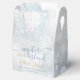 Caixas de lembrancinhas de 1º aniversário de inverno ONDerland fofas com tipografia elegante e flocos de neve delicados em um fundo de gelo de inverno. Projetado por Thisisnotme©
