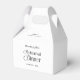 Envie os convidados para casa com um token de agradecimento elegante usando essas Caixas de Agradecimento para Jantar de Rehearsal Moderno Chic. Projetadas com tipografia elegante e uma estética minimalista preta e branca, essas caixas de lembrança adicionam um toque refinado à celebração do fim de semana do seu casamento. Perfeitas para doces, presentes, velas miniaturas, lembranças ou presentes de boas-vindas. Ideais para jantares de ensaio formais, semi-formais, no terraço, jardim, restaurante ou black-tie. Combine com menus, guardanapos, porta-copos e placas correspondentes para uma apresentação coesa e digna de mídia social.