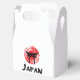 Ilustração de design de texto do Japão com sol vermelho gigante e decoração de portão de Torii para todos que gostam de viajar