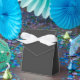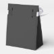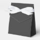 Caixas de favores "Jet Black" de cor escura e sólida com fita branca. Jet Black é uma cinza muito escura. Clique em "Personalizar" para mudar de cor ou para adicionar um padrão ou design. Código hexadecimal do produto: #343434