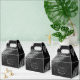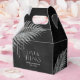 Opte por um olhar impressionante, reluzente e vírgula usando as peças nesta suíte de casamento, como mostrado, com joias em cascata das folhas de palma enrugadas de diamante ou apague as camadas de joias para um olhar um pouco mais conservador. Este conjunto apresenta folhas de prata cintilante e um carvão negro, fundo texturizado. A caixa de Obrigados do casamento mostrada aqui tem uma borda de folhas cintilantes, uma fonte elegante do Serif com o nome da noiva e noiva e a data do casamento. Insira facilmente seus próprios detalhes de casamento usando o modelo fornecido. Veja o link de coleção nesta página para ver todos os itens correspondentes neste conjunto bonito ou ID830 de pesquisa para ver opções de cor adicionais para este design.