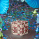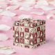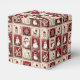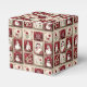 Neves sorridentes, alegres, flores e flocos de neve em quadrados bronzeados e vermelhos em um fundo bronzeado criam uma bela caixa de presentes com um olhar rústico e country. Muito fofo, e perfeito para todos os presentes de férias.