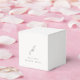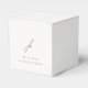 Caixa de favoritos de casamento elegante com um design clássico com seu monograma em uma fonte de script junto com seus detalhes de evento em uma fonte de serifa tradicional.