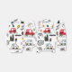 A playful, cartoon-style city pattern featuring buses, cars, helicopters, traffic lights, buildings, and fun doodle text like “Beep Beep,” “Wuz Up?” and “Go,” in bright red, yellow, blue, and black tones.