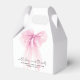 Caixas de agradecimento para chá de noiva fofas com um laço coquete rosa elegante em aquarela, "com amor e gratidão" em um script chique, e o nome da noiva e data do chá em letras modernas.