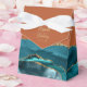 Esta elegante caixa de favoritos moderna apresenta uma cor azul-lacrimejante agate design aparada com brilho dourado. Personalize-o com os nomes da noiva e do noivo em um guião de manuscrito dourado sobre um grande e sobre um fundo laranja queimado, com a data do casamento abaixo.