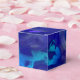 Caixa de favoritos com textura de tinta espumante em acentos de azul real, turquesa e roxo.