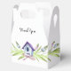 Esperando um pássaro novo no seu ninho? Estas caixas de favor são tão bonitas com uma casinha pássaro roxa com caules de lavanda e verde. Personalize com seu próprio nome, data e mensagem na parte traseira da caixa