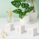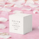 Caixa de agradecimento elegante para chá de noiva, personalizada com nome e data em bege e preto.