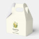 Tiny favor box with a lovely illustration of a bouquet of lemons surrounded by white blossoms leaves and sprigs.