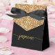 Caixa personalizada com nome monograma elegante e moderno em glitter dourado. Este design apresenta seu primeiro nome em uma linda tipografia de assinatura com estilo de letra manuscrita e floreios (ou caligrafia) acima de um bloco de glitter em cor dourada falsa sobre fundo preto. Estas caixas de presente femininas e elegantes são ótimas para distribuir presentes, lembrancinhas e guloseimas durante uma próxima festa de aniversário, churrasco, festa de 16 anos, chá de bebê, recepção de casamento, despedida de solteira, chá de noiva, aniversário de casamento e muito mais.