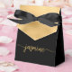 Caixa personalizada elegante moderna e feminina com folha dourada e monograma de nome, letra personalizada. Este design apresenta seu primeiro nome em uma linda tipografia de assinatura com estilo de letra manuscrita (ou caligrafia) acima de um bloco de folha cor dourada falsa em fundo preto. Estas caixas de presente femininas e elegantes são ótimas para distribuir presentes, presentes para convidados e guloseimas durante uma próxima festa de aniversário, churrasco, aniversário de 16 anos, chá de bebê, recepção de casamento, despedida de solteira, chá de noiva, aniversário de casamento e muito mais.