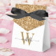 Caixa de Favor Personalizada com Brilho Moderno e Elegante em Branco e Dourado com Letra Inicial de Monograma de Nome Personalizado em Grafia. Este design apresenta seu primeiro nome em uma bela tipografia de assinatura com estilo de letra manuscrita com floreios (ou caligrafia) com monograma inicial, acima de um bloco de brilho em cor dourada falsa sobre fundo branco. Estas caixas de presente femininas e estilosas são ótimas para distribuir, presentes, presentes para convidados e guloseimas durante uma próxima festa de aniversário, churrasco, chá de bebê, aniversário de 16 anos, recepção de casamento, despedida de solteira, chá de noiva, aniversário de casamento e muito mais.