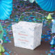 Stylish light blue and silver quinceañera Favor Box, perfect for a princess-themed 15th birthday party. Customizable and elegant décor.