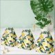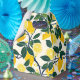 O padrão apresenta uma design viva e vibrante com limoeiros exuberantes. As ramificações são enfeitadas com limões amarelos maduros, alguns dos quais são fatiados para revelar seus interiores suculentos. Os limões estão cercados por folhas verdes profundas, que contrastam lindamente com o fundo quente e creme. O estilo geral é ousado e estilizado, com linhas limpas e um sentido de simetria, criando uma estética nova e alegre que evoca uma vibração mediterrânica.