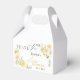 Celebre o amor e os cítricos com essas encantadoras Caixas de Lembrancinhas de Chá de Noiva Florais de Limão com mensagem personalizada, a maneira perfeita de agradecer aos seus convidados com estilo. Com um sofisticado design de limão em aquarela, folhagens de eucalipto e flores cor de rosa suave, essas caixas de lembrancinhas adicionam um toque brilhante e elegante à decoração do seu chá de noiva.