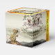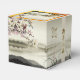 Cena linda e bucólica com flor de cereja, pássaro, lago como fundo + corte de papel de um rato com sombra + Feliz ano novo em chinês + 2020. Design no cubo clássico favorito box + fundo do ouro (superior) + desejos em inglês (personalizar se quiser). Disponível noutros estilos: gable, tent e take out. Cartão de saudação correspondente, convites e muito mais... Perfeito para um romântico Ano Novo Chinês do Rato 2020.