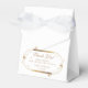 Caixas de Favor do Casamento de Lua Branca Dourada Celestial Astronomia Solar Lua Branca apresentam um elegante sol dourado, lua e estrelas com um quadro de ouro sobre fundo branco. Dentro adicione suas informações personalizadas da caixa de favoritos, como "Obrigado por compartilhar nosso dia especial conosco" com seus nomes e data de casamento. Projetado pelo Evco Studio www.zazzle.com/store/evcostudio