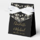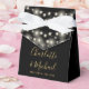 Caixa de lembrança de casamento preta e dourada elegante com lindas luzes de corda, nomes em escrita de assinatura elegante e data especial em tipografia moderna. Você pode personalizar com sua própria mensagem de agradecimento sob a tampa. Uma maneira perfeita de dizer obrigado aos seus convidados! Criado por Thisisnotme©