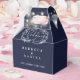 Uma elegante caixa de lembrança de casamento azul marinho com luzes de corda e folhagem floral desenhada à mão. Você pode personalizar com sua própria mensagem de agradecimento no verso. Uma maneira perfeita de dizer obrigado aos seus convidados! Criado por Thisisnotme©