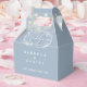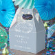 Uma caixa de lembrança de casamento azul desbotado com luzes de corda e folhagem floral desenhada à mão. Você pode personalizar com a sua própria mensagem de agradecimento no verso. Uma forma perfeita de agradecer aos seus convidados! Desenhado por Thisisnotme©
