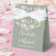Caixa de lembrança de casamento elegante verde sage com luzes de corda, nomes em letreiro personalizado e data especial em tipografia moderna. Você pode personalizar com sua própria mensagem de agradecimento sob a tampa. Uma maneira perfeita de dizer obrigado aos seus convidados! Criado por Thisisnotme©