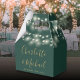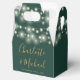 Caixa de lembrança de casamento elegante com lindas luzes de corda, nomes em escrita dourada sofisticada e data especial em fundo verde esmeralda. Você pode personalizar com sua própria mensagem de agradecimento no verso. Uma maneira perfeita de dizer obrigado aos seus convidados! Criado por Thisisnotme©