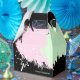 Magical kids birthday with stars and bubbles coming from a star shaped wand against a light pink and mint green background.