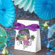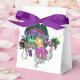 Tenda branca com uma caixa de favor de fita roxa com uma imagem festiva de Mardi Gras, na frente e atrás, de uma morada de penas, máscaras de penas, um chapéu de fúcsia sequenciado, miçangas verdes e roxas, balões roxos, verdes e dourados, e dois corações ametistas roxos. Ver confete correspondente, convite, envelope, saco de favores, etiqueta de favor, sacos de presente, etiqueta, adesivo redondo, vinil de corte personalizado e papel de embalagem. Veja toda a coleção de Caixa de Favoritos do Mardi Gras em TOUCHES ESPECIAIS | Seção Favoritos para festas.