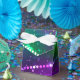 Púrpura brilhante e fundo verde com confete brilhante. Festival Mardi Gras.