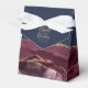 Esta elegante caixa de favores moderna apresenta uma coloração d'água burgundy agate design aparada com brilho dourado. Personalize-o com os nomes da noiva e do noivo em um guião de manuscrito dourado sobre um grande e, junto com a data do casamento abaixo, em um fundo azul marinho.