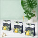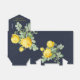 Design apresenta um elemento floral impresso em tons azuis marinho e amarelo-limão sobre folhas de folhagem e rosas flores sobre um fundo de cor d'água do marinho e do kraft amarelo. Excelente para as comemorações do casamento!