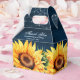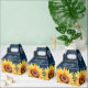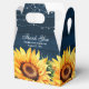 Elegante obrigado de casamento azul e amarelo você prefere uma caixa com flores de sol a cores-d'água contra um fundo de madeira rústica adornado com luzes de cordas. Personalize facilmente esta caixa de favoritos azul-marinho floral rústica com seus detalhes de evento.