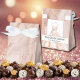 Esta Caixa de Presente de Vestido de Noiva em Mármore Dourado Rosa é o toque perfeito para o seu casamento ou celebração de quinceañera. Com um deslumbrante padrão em mármore dourado rosa, a parte de trás da caixa exibe uma bela ilustração de um vestido de noiva em um cabide. Personalize-a com uma mensagem de agradecimento sincero e os nomes do casal (ou o nome da quinceañera) para um toque especial e personalizado.